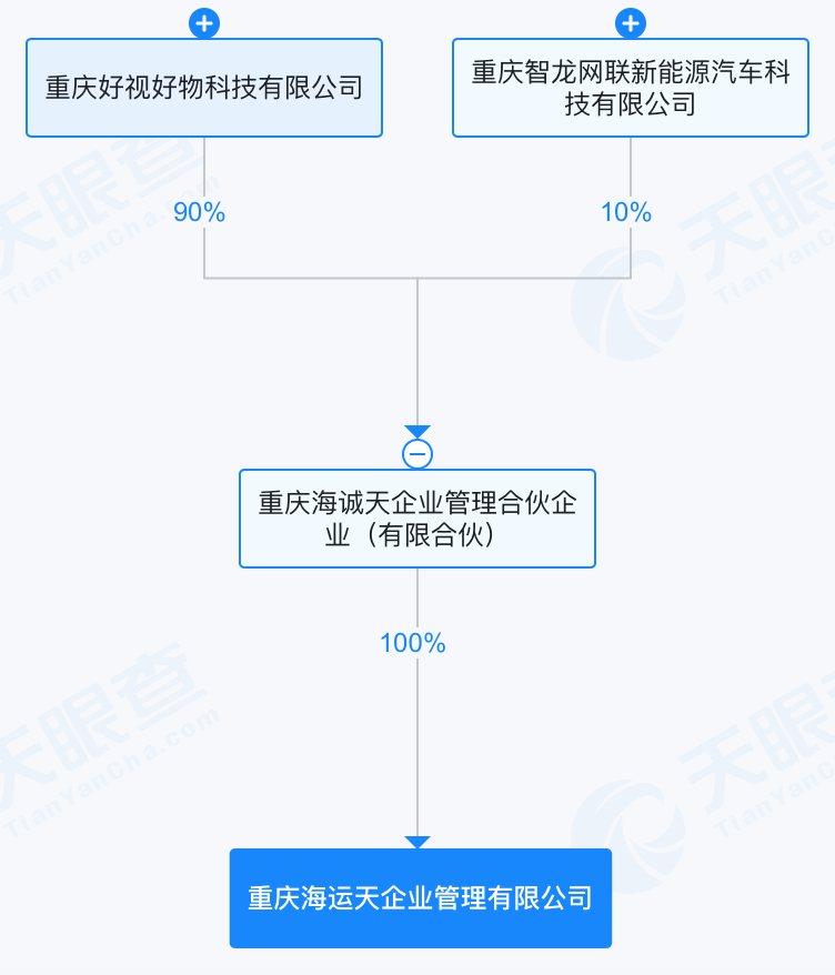 天眼查信息顯示,重慶海行天是重慶海永天企業(yè)管理合伙企業(yè)(有限合伙)的全資子公司,后者的股東包括光大金甌資產(chǎn)管理有限公司(持股61.3555%)、重慶好視好物科技有限公司(持股38.542%)。