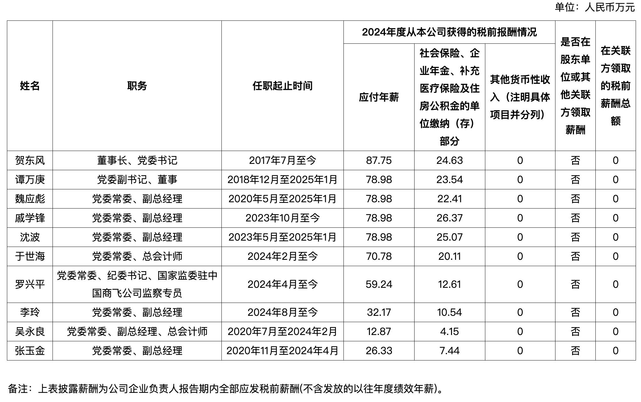 中國商飛披露企業(yè)負責人2024年度薪酬情況