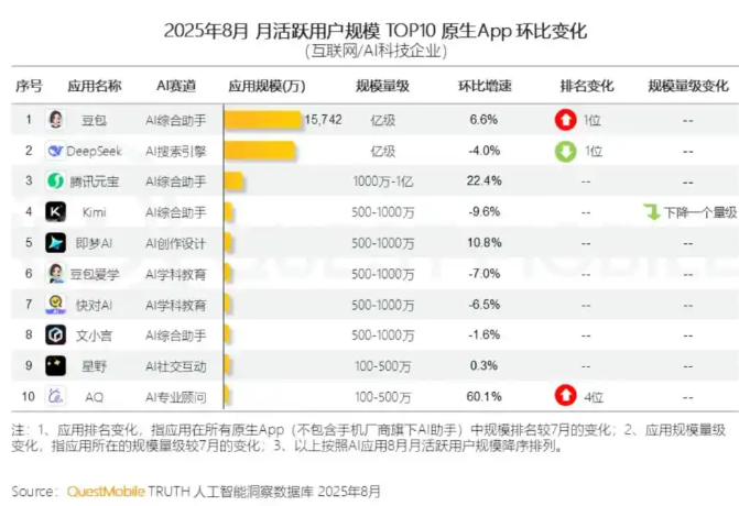 論用戶規(guī)模、增速與市場(chǎng)聲量,豆包和千問(wèn)卻都實(shí)現(xiàn)了對(duì)早期玩家的全面反超。