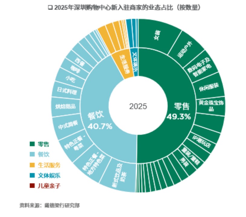 2025年深圳購物中心新入駐商家業(yè)態(tài)占比圖 圖源:戴德梁行