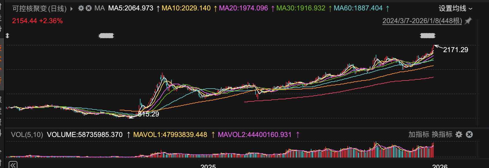 截至1月8日收盤,可控核聚變指數(shù)(861525.EI)漲幅為2.36%。該指數(shù)2025年年內(nèi)累計漲幅達(dá)52.5%。