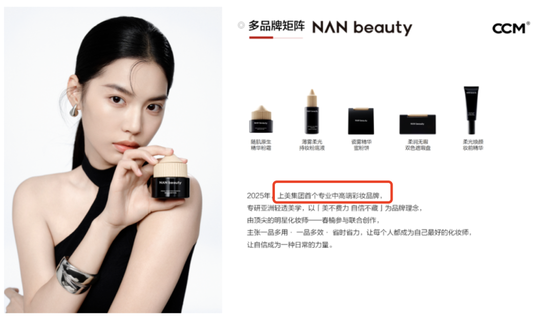 明星化妝師春楠背書、上美股份作為強后方支持、定位中高端底妝賽道的Nan beauty,亮相之初就疊滿了爆款buff,也一度被行業(yè)置于“有望成為下一個毛戈平”的市場坐標(biāo)。