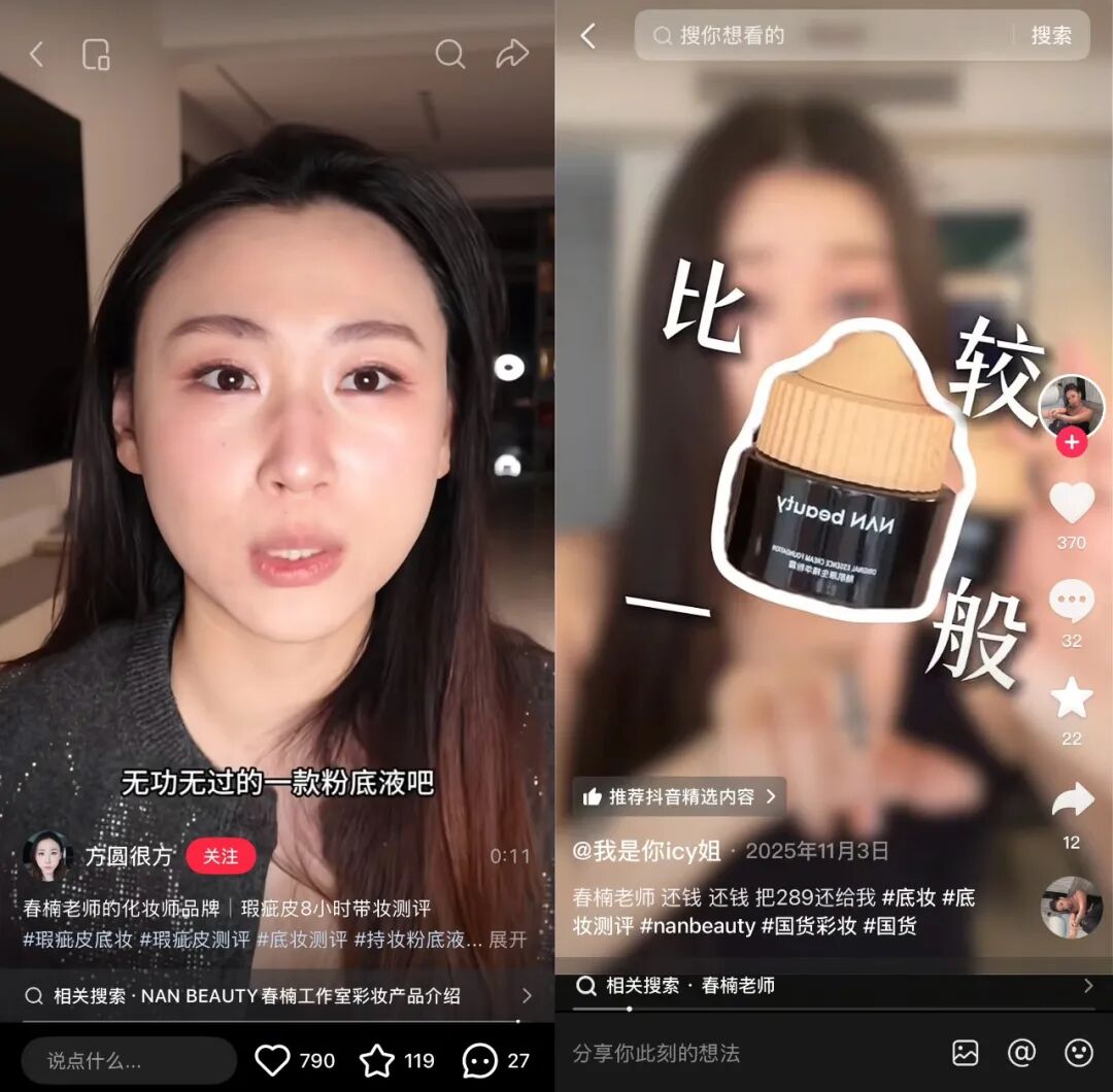 Nan beauty不僅沒有成為市場期待的“下一個毛戈平”,反而有點高開低走。這一現(xiàn)狀背后深層次的原因,是底妝賽道的復(fù)雜性、以及化妝師IP在當(dāng)下社媒環(huán)境中的勢能下滑。
