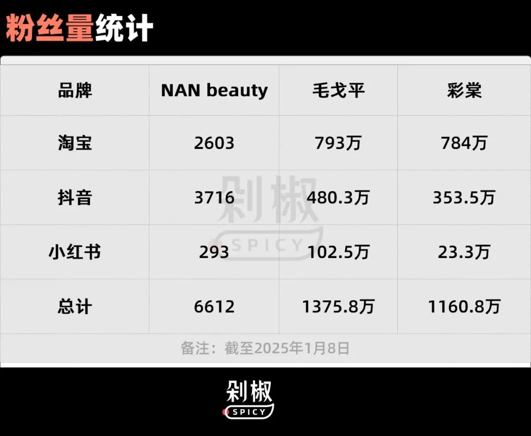 就背后的化妝師IP的影響力而言,春楠的社交聲量,還不足以帶飛Nan beauty。