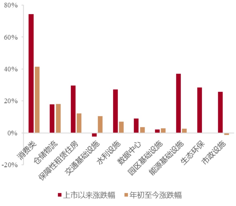不同類別REITs上市以來漲跌幅和2025年初至今漲跌幅  圖片來源:招商基金