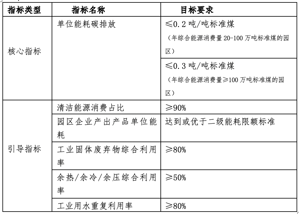 按照910號(hào)通知,國家級(jí)零碳園區(qū)建設(shè)的指標(biāo)體系如下: