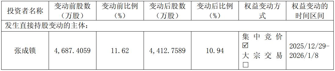 本次權(quán)益變動(dòng)前,張成鎖持有科林電氣4687.41萬(wàn)股,占公司總股本的11.62%;本次權(quán)益變動(dòng)后,張成鎖持有科林電氣4412.76萬(wàn)股,占公司總股本的10.94%。本次權(quán)益變動(dòng)觸及1%刻度的整數(shù)倍。
