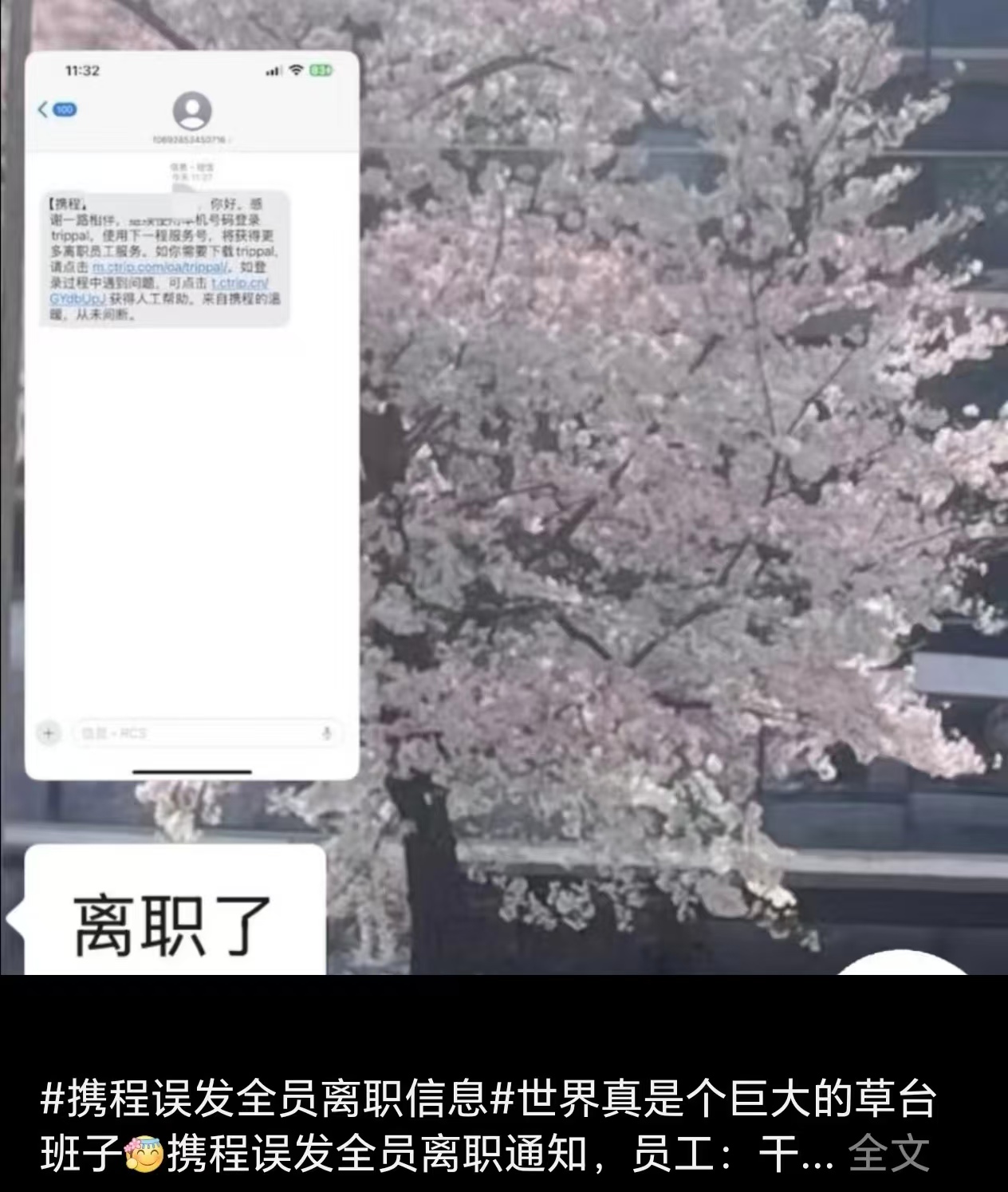 1月12日,有消息稱“攜程誤發(fā)全員離職短信”,相關(guān)話題引發(fā)大量關(guān)注。
