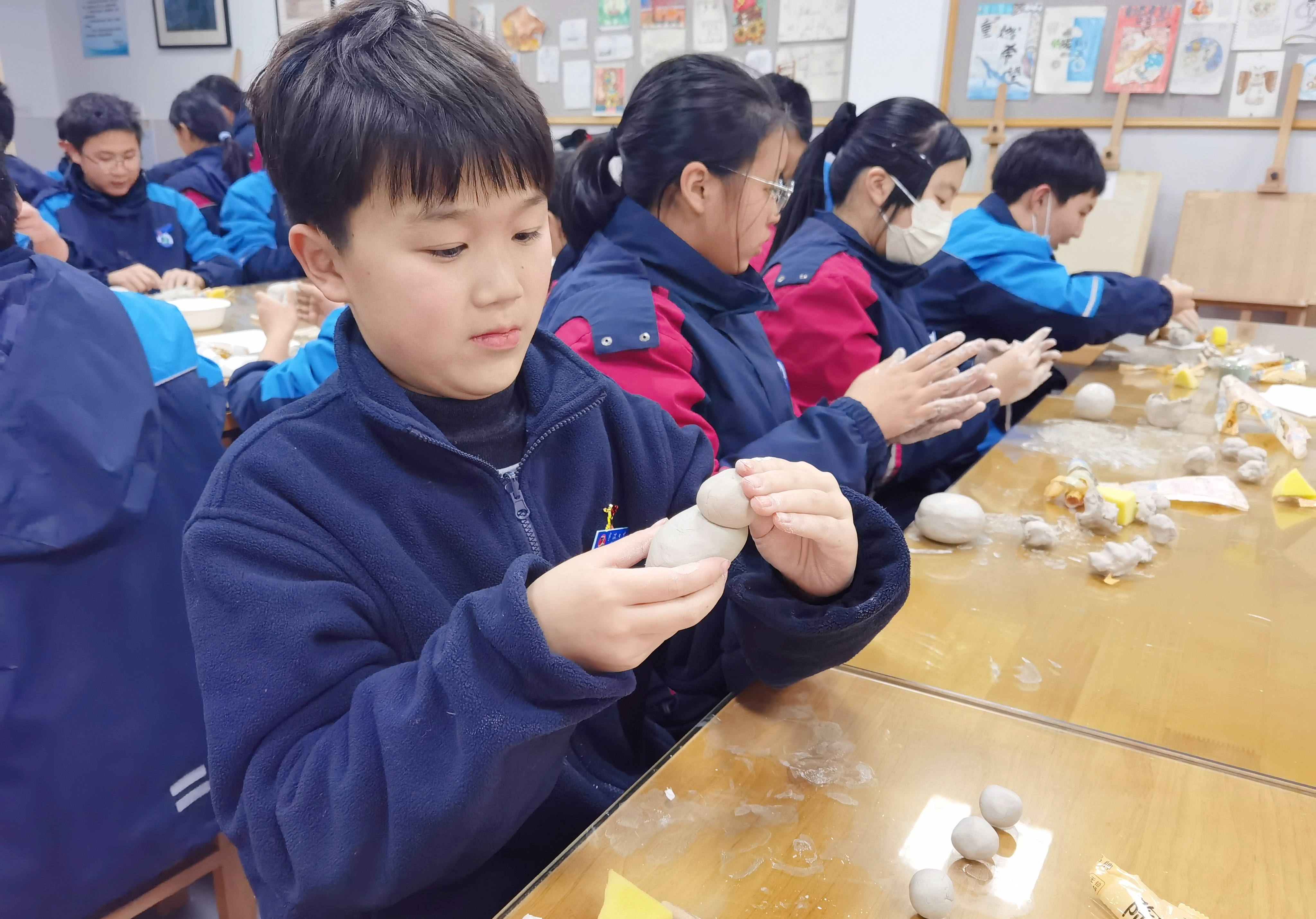 “原來(lái)青瓷的‘青’是鐵元素在高溫下的神奇變身!”“我的小馬擺件終于完成啦!”1月12日,寧波市第七中學(xué)的美術(shù)課堂熱鬧非凡。寧波財(cái)經(jīng)學(xué)院的師生們帶著瓷土原料與千年非遺故事走進(jìn)校園,開(kāi)展《行走的藝術(shù)館》主題實(shí)踐活動(dòng),以越窯青瓷為橋梁,架起高校與中小學(xué)協(xié)同育人的文化紐帶。