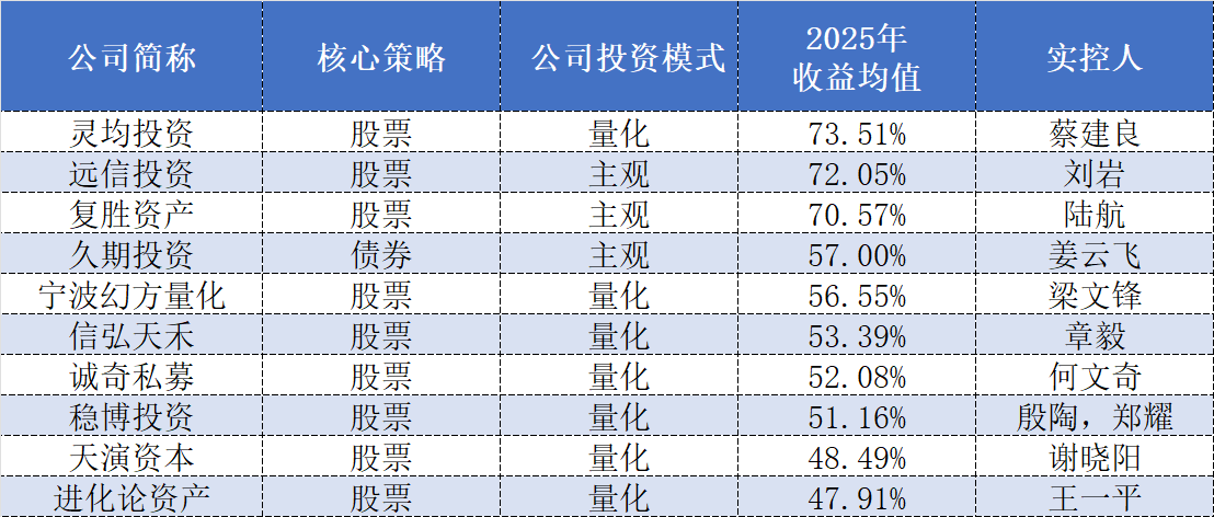 量化巨頭靈均投資以高達(dá)73.51%的收益均值,成為2025年百億私募收益總冠軍。