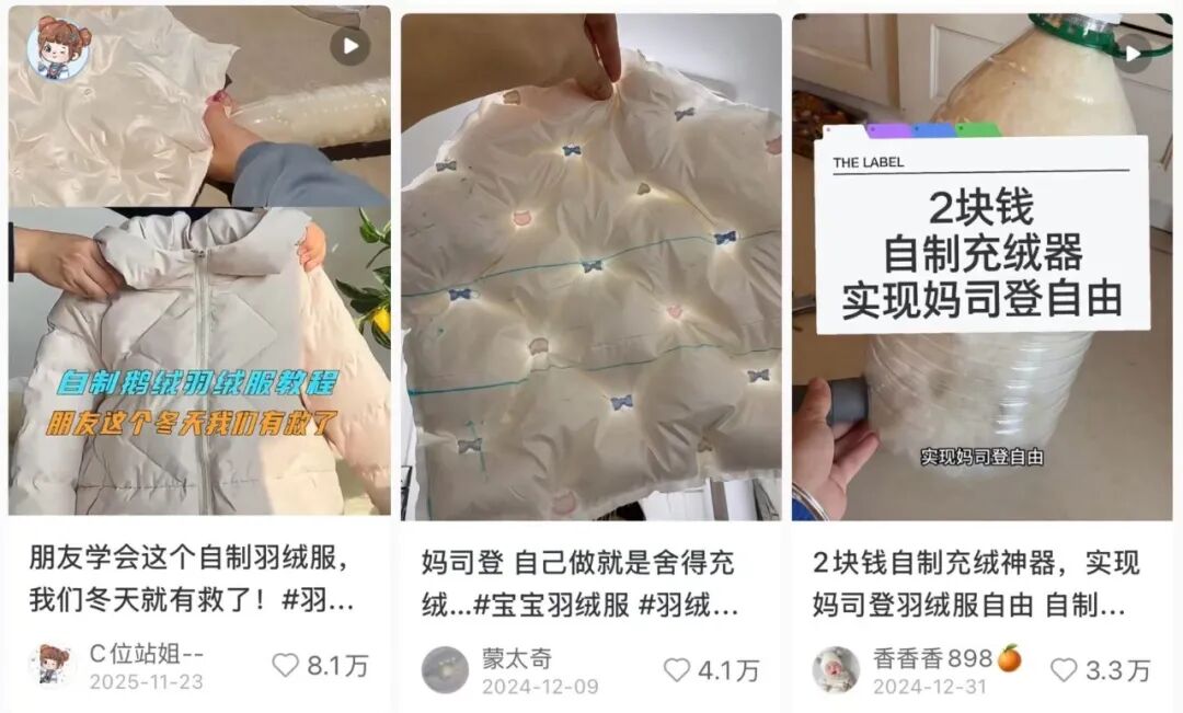 今年冬天,中國社交媒體上最熱門的羽絨服話題,不是哪個品牌又推出了新款,而是如何以最低成本自制羽絨服。