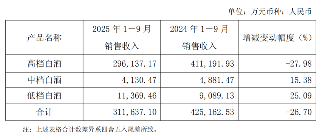 圖片來源:口子窖2025前三季度財(cái)報(bào)截圖