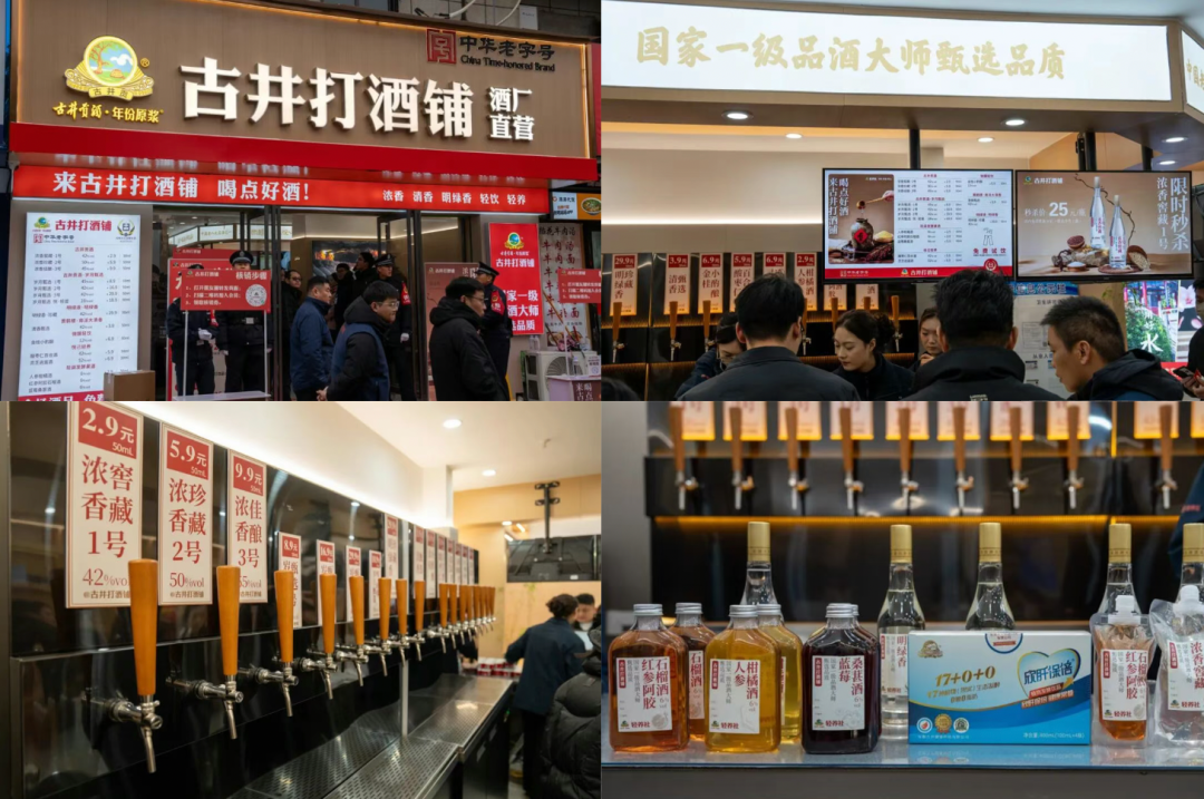 在線上集中營銷之外,是線下開拓場景。2025年7月,位于濉溪釀酒遺址博物館旁的“口子窖東關(guān)打酒鋪”開業(yè),旨在將酒文化與地方運(yùn)河文化相結(jié)合。然而,這家店鋪更多承載著文化展示功能,交互性與商業(yè)轉(zhuǎn)化有限。