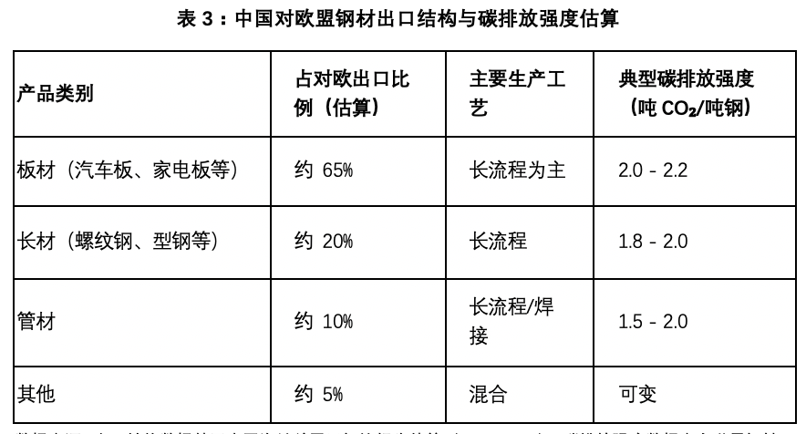 中國對歐盟出口的鋼材以高附加值的板材(如汽車板、家電板)和部分型材為主,這些產(chǎn)品正是長流程的優(yōu)勢領(lǐng)域,也意味著更高的碳排放基數(shù)。