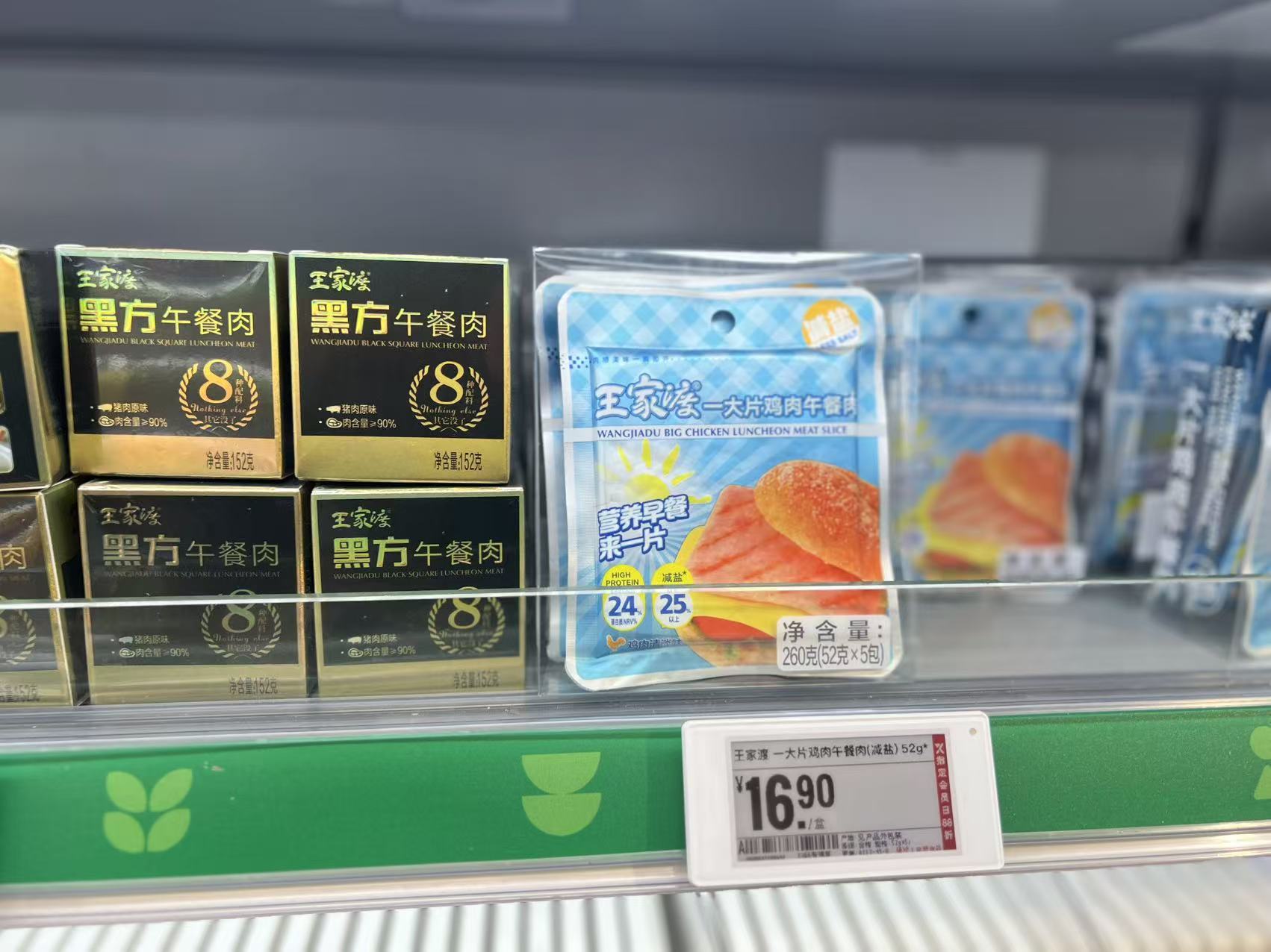 王家渡黑方午餐肉、雞肉午餐肉 圖片拍攝:界面新聞 馬越
