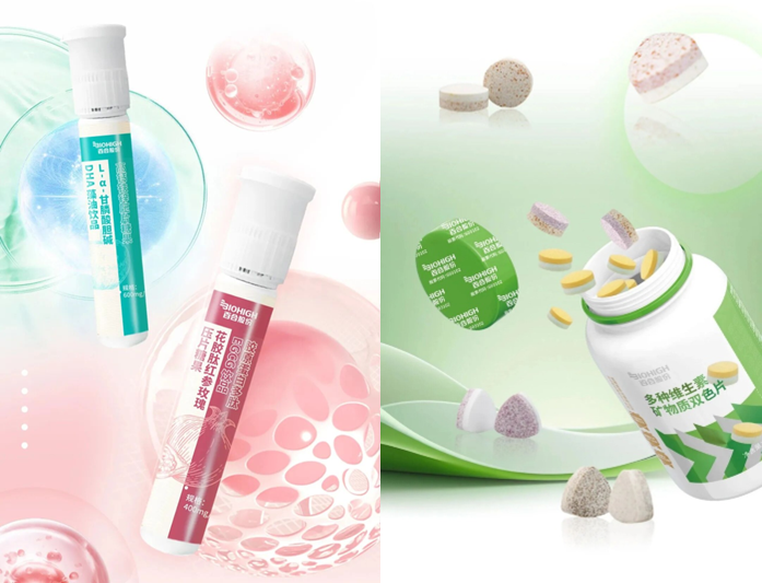 在國(guó)內(nèi),已經(jīng)可見(jiàn)這樣的落地解決方案。例如,百合股份通過(guò)“雙艙功能飲”的液態(tài)與固態(tài)分區(qū)設(shè)計(jì),解決易降解成分的穩(wěn)定性問(wèn)題,并利用“雙色片”的分層壓片技術(shù)規(guī)避配伍沖突,在確保功效的同時(shí)優(yōu)化了口感與便攜性。