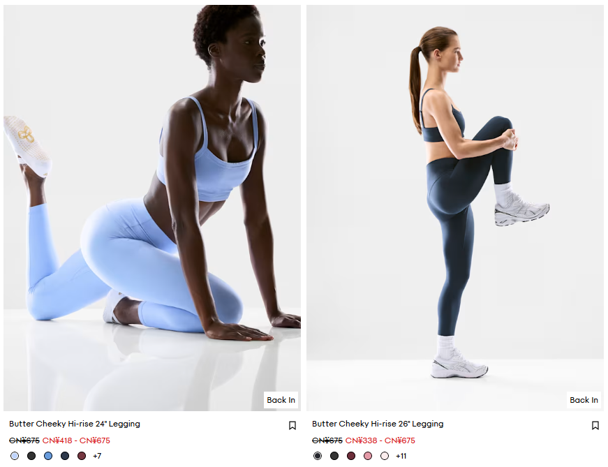 以瑜伽產(chǎn)品為例,Aritzia旗下的瑜伽產(chǎn)品價(jià)格在120-1000元之間,其Golden緊身褲主要價(jià)格在300-700元之間;作為對(duì)比,lululemon的瑜伽產(chǎn)品價(jià)格在120-1200元之間,其招牌Align?長(zhǎng)褲價(jià)格在750-1000元左右,整體價(jià)位明顯高于Aritzia。