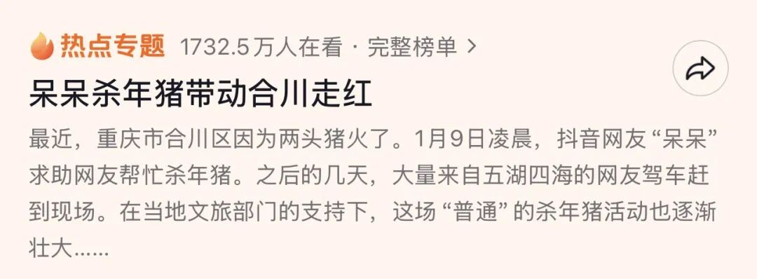 拿開年爆火的重慶合川“呆呆殺年豬”為例,它的走紅核心不是“殺年豬”這件事本身,而是視頻里不加修飾的真實感:老父親的手足無措、呆呆的實在直白、院子里堆著的柴火、鍋里冒著的熱氣,這些“不完美的細節(jié)”,恰恰戳中了現(xiàn)代人對“煙火氣”的集體思念。
