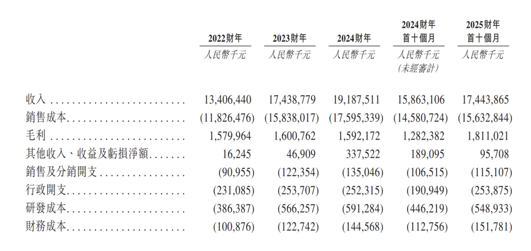 招股書顯示,國恩股份2022年、2023年、2024年營收分別為134億元、174.4億、191.9億元;期內(nèi)利潤分別為7.2億、5.4億、7.2億元,復(fù)合年增長率(CAGR)為19.6%。2025年前10個月營收為174.4億元,毛利為18.1億元,利潤為7.21億元。