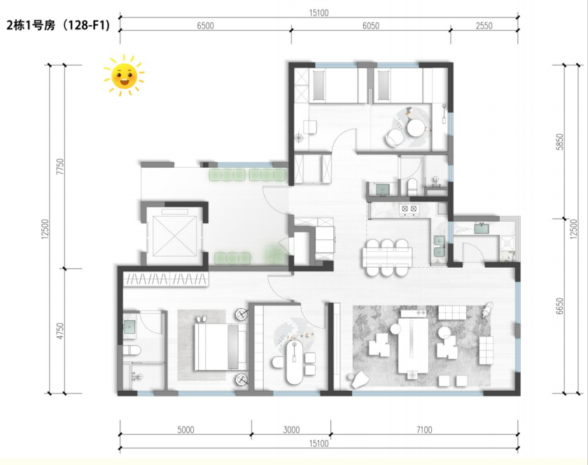 建面約128㎡的越級戶型,4室2廳2衛(wèi)的設計,做到111%得房率,南向面寬達15.1米,實得面積可媲美市面上143㎡新規(guī)住宅,類比170㎡以上舊規(guī)產(chǎn)品。