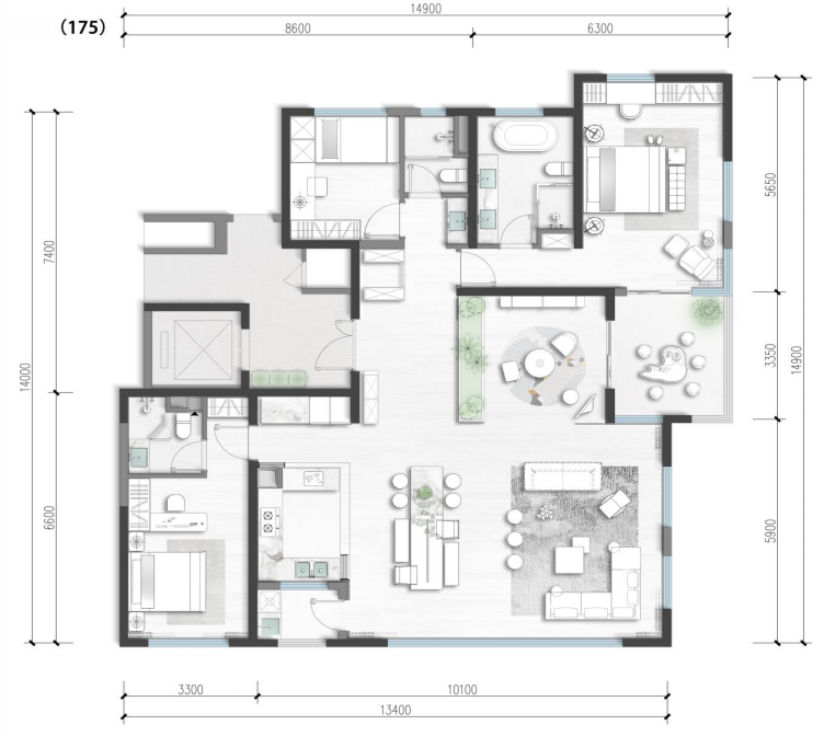 建面約176㎡戶型,更是萬科將成都豪宅200㎡+布局在昆明的首創(chuàng)落地之作。4室2廳3衛(wèi),類四代宅109%得房率,10米的超大客餐開間,實得面積堪比傳統(tǒng)的180㎡平墅級居住體驗。