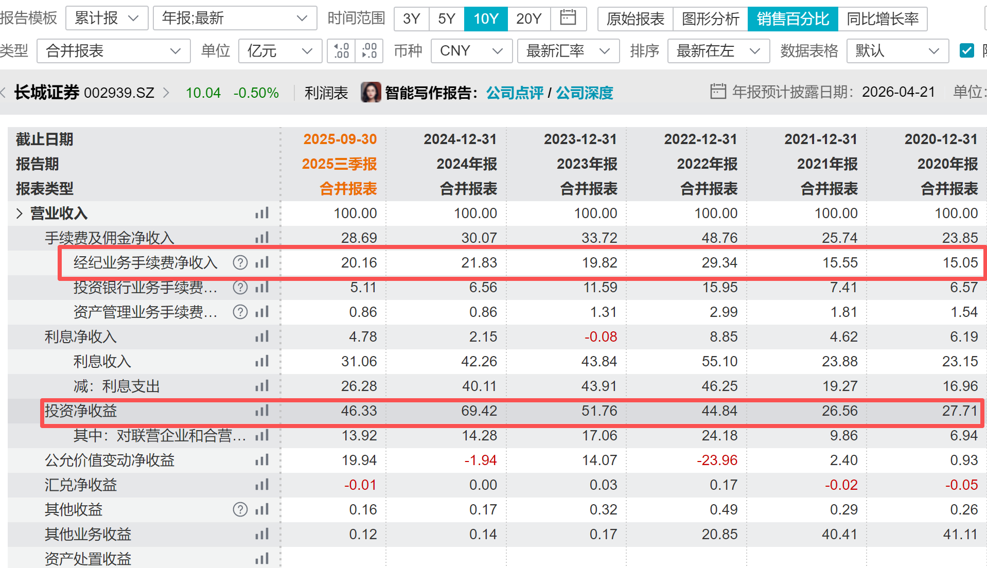 Wind顯示,2022年-2024年期間,公司投資凈收益對營業(yè)收入的貢獻度分別達到44.84%、51.76%和69.42%;經(jīng)紀(jì)業(yè)務(wù)手續(xù)費傭金凈收入占比也分別達到29.34%、19.82%和21.83%。