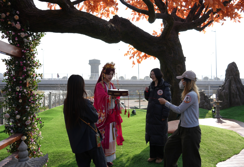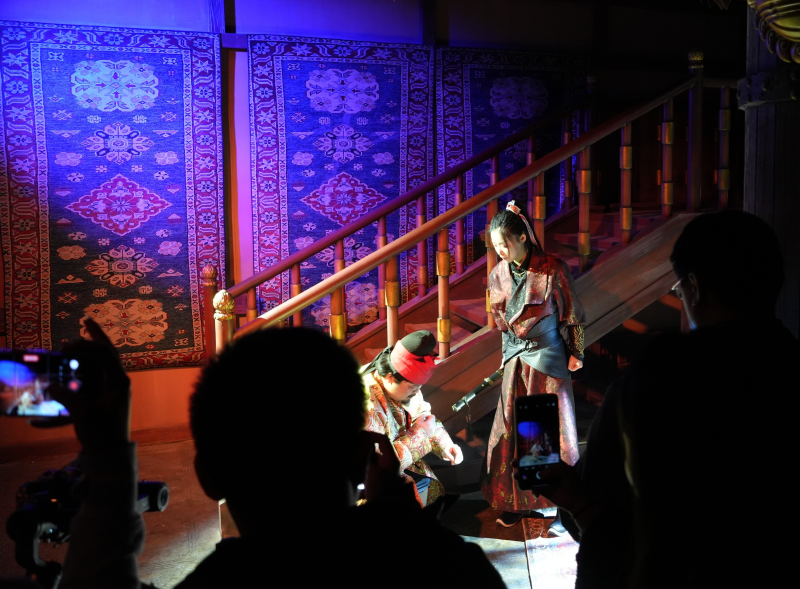 戴上VR眼鏡,結合實景空間和騎乘設備,在時常約20分鐘的《唐朝詭事錄》全感劇場中探索唐朝長安。在《狂飆》影視打卡區(qū),走進京海街道和高啟強的老宅,并與劇中人物互動飆戲。