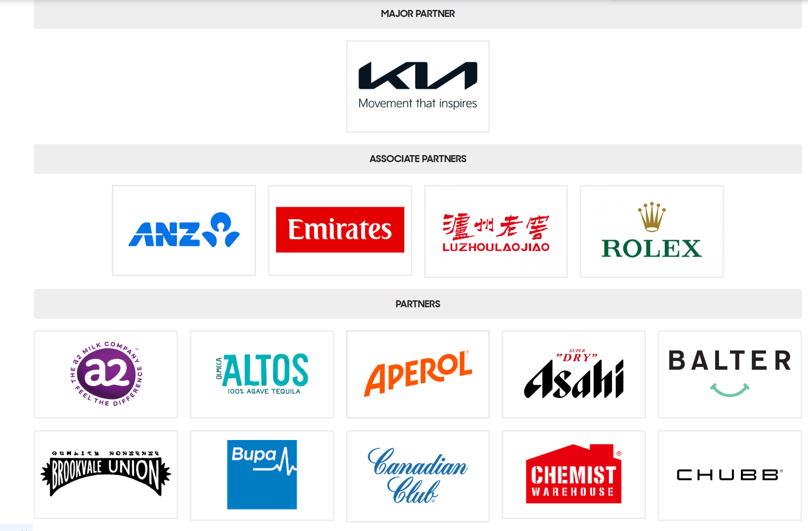 界面新聞通過澳網(wǎng)官網(wǎng)了解到,其贊助商分為三個(gè)層級,分別是首席合作伙伴(Major Partner)、聯(lián)合合作伙伴(Associate Partners)與合作伙伴(Partner)。