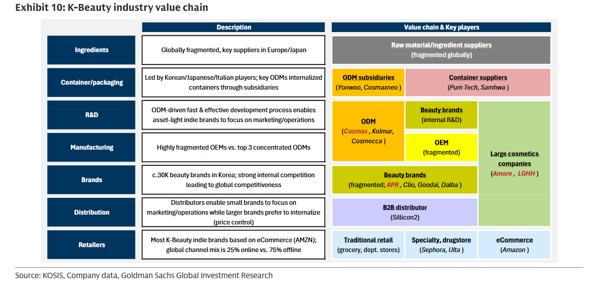 高盛最新報(bào)告指出,韓國(guó)美妝的增長(zhǎng)引擎如今變?yōu)橛纱罅恐行∑放平M成的“長(zhǎng)尾生態(tài)”,它們依托成熟的韓國(guó)ODM體系、數(shù)字原生的營(yíng)銷路徑以及“可負(fù)擔(dān)的優(yōu)質(zhì)”定價(jià)策略,正在北美市場(chǎng)實(shí)現(xiàn)系統(tǒng)性突破。
