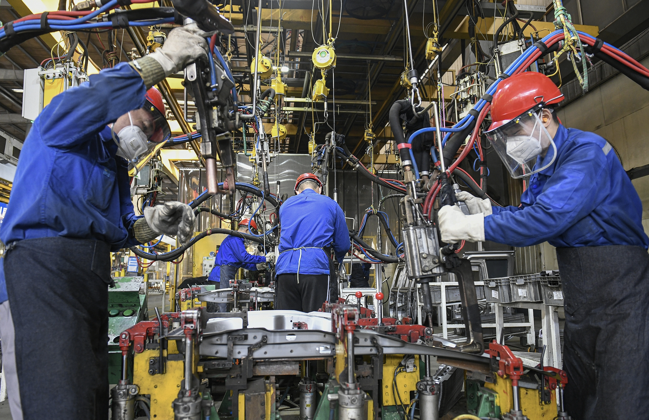 2024年11月28日,青島西海岸新區(qū)膠南街道的五順汽車模具部品有限公司車間內(nèi),工人在自動(dòng)化生產(chǎn)線生產(chǎn)。圖片來源:CFP