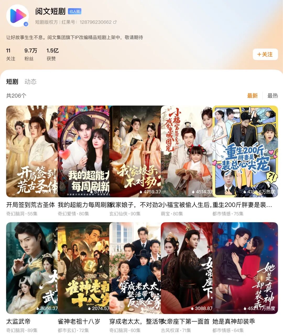 同樣預(yù)約超300萬(wàn)的還有閱文出品的《我真沒想重生啊2》,去年年底,該系列首部作品在紅果上線一周,便斬獲超10億播放量,成為男頻戀愛題材的熱門內(nèi)容。除此之外,閱文近來(lái)上線的短劇內(nèi)容中,與奇幻、權(quán)謀相關(guān)的男頻短劇也在繼續(xù)提升。
