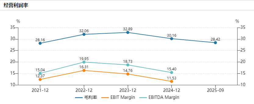 這期間,民爆光電扣非后歸母凈利潤持續(xù)走低,分別同比下滑3.5%、4.74%、18.97%;公司毛利率也從2023年的32.89%持續(xù)下滑至30.16%、28.42%。