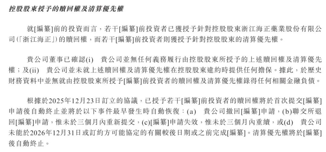 贖回權自首次IPO申請?zhí)峤缓髸簳r終止,若出現(xiàn)申請撤回、被港交所退回且未及時重提、申請失效或2026年底前未能成功上市等情形,該權利將自動恢復;而清算優(yōu)先權則會在公司成功上市后徹底終止。