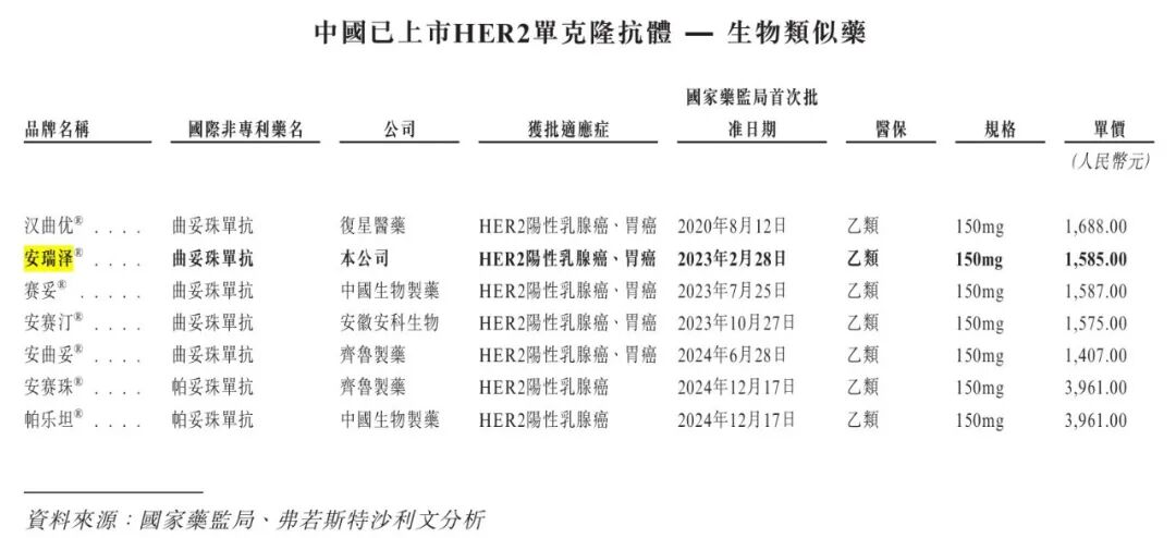 安瑞澤作為國內第二批獲批的曲妥珠單抗類似藥,目前亦有八款HER2單抗類似藥在國內上市,且已全部納入醫(yī)保,競爭態(tài)勢明顯。