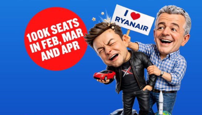 “專為馬斯克及其他X平臺(tái)上的蠢貨準(zhǔn)備,”瑞安航空表示,“趕快搶購,以免馬斯克搶先訂到!”