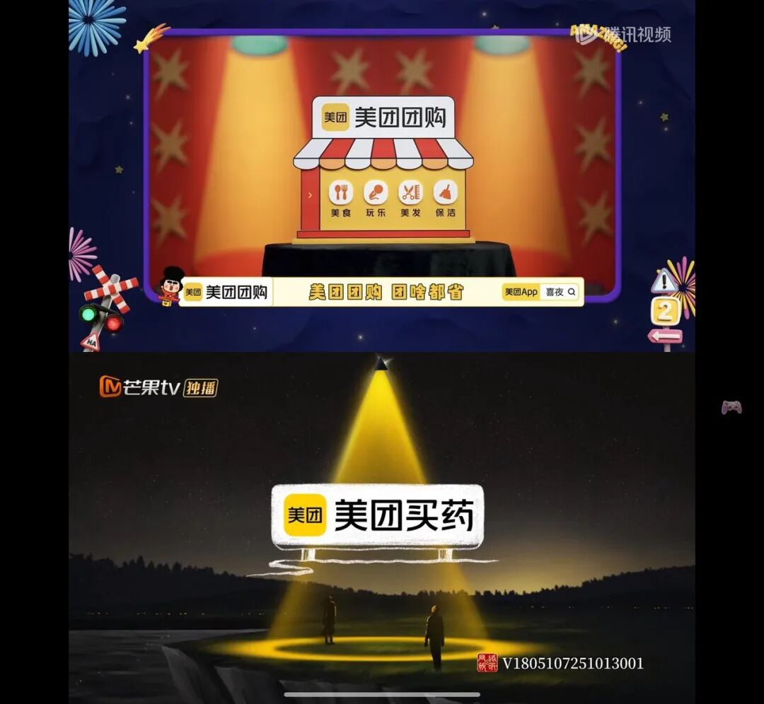 美團(tuán)則側(cè)重在綜藝領(lǐng)域矩陣式投放,美團(tuán)外賣(mài)、美團(tuán)買(mǎi)藥、美團(tuán)團(tuán)購(gòu)等各核心業(yè)務(wù)線的冠名與贊助,幾乎覆蓋了全年所有聲量較高的頭部綜藝——從《脫口秀和他的朋友們2》《麻花特開(kāi)心2》《一飯封神》到《新說(shuō)唱2025》《這是我的西游》《喜人奇妙夜2》 《再見(jiàn)愛(ài)人5》等等,喜劇、真人秀、音樂(lè)等各種類(lèi)型皆有,形成了強(qiáng)大的聲量矩陣。