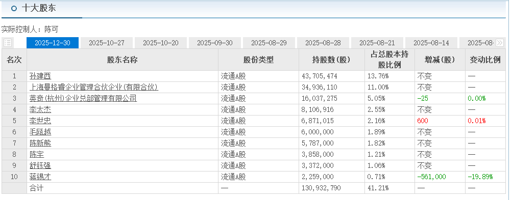 在過去幾年時(shí)間里,經(jīng)過司法拍賣、減持、大宗交易等之后,截止2025年12月30日,英奇(杭州)企業(yè)總部管理有限公司在達(dá)剛控股中的持股比例下降至5.05%。