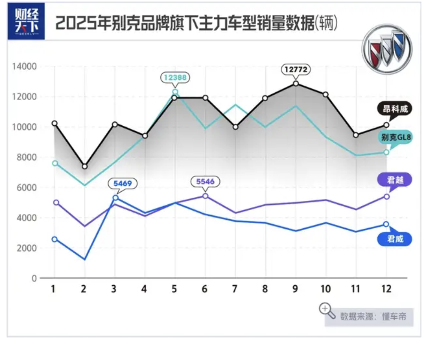在別克整體銷量結(jié)構(gòu)中,賣得最好的不是GL8,而是燃油車?yán)锏陌嚎仆易?。官方?shù)據(jù)顯示,2025年昂科威家族全年銷售164346輛,占整體銷量的近四成,其中昂科威Plus同比大漲88.6%。與此同時(shí),同屬于燃油車的君越、君威雙轎車組合全年銷量101542輛,其中君越同比增長106%。