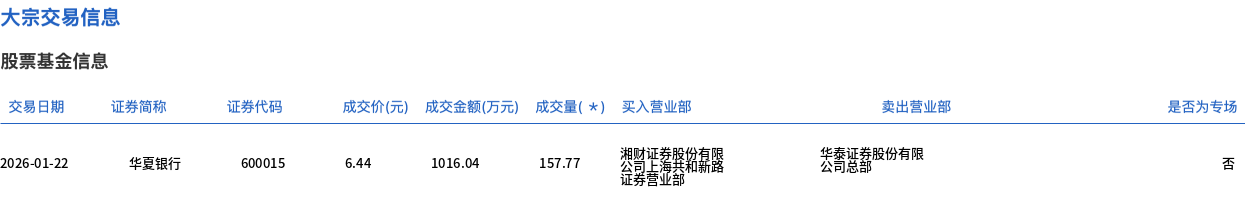 華夏銀行今日大宗交易平價成交157.77萬股,成交額1016.04萬元