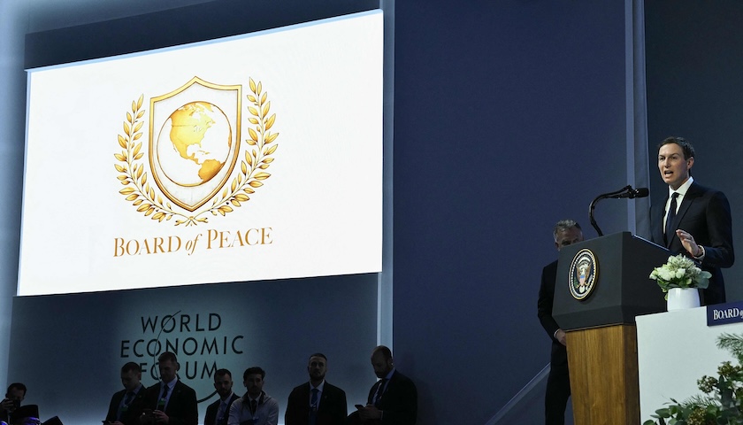 2026年1月22日,瑞士達(dá)沃斯,特朗普的女婿庫什納在世界經(jīng)濟(jì)論壇年會的“和平委員會”會議上發(fā)表講話。來源:視覺中國