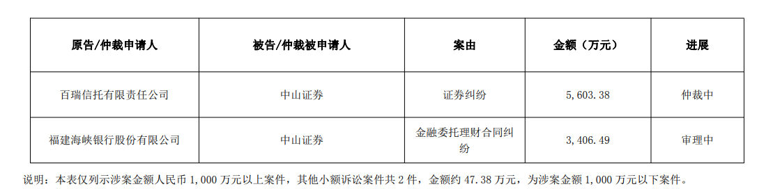 此次4.89億元并非中山證券近期唯一的涉訴案件。