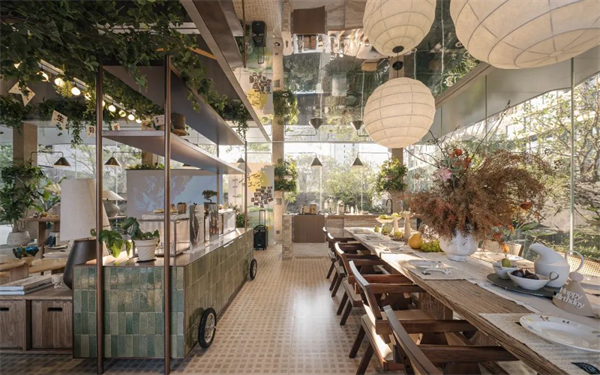 還有“樹下見”高定空間、星光書屋、星聚客廳等核心場(chǎng)景,以滲透、穿插的方式融入社區(qū)景觀各個(gè)空間角落,豐盈與激活社區(qū)的溫度,讓生活發(fā)生更多可能。“樹下見”高定空間:復(fù)合型歡聚場(chǎng)“樹下見”高定空間是一個(gè)具有自然野趣屬性的全年齡段的社交娛樂中心,靈感來(lái)自于Dior高奢旗艦店和上海something意大利餐廳,通過開放式空間設(shè)計(jì),將自然引入建筑之中,融入童趣、餐飲、文化、自然等多元化互動(dòng)場(chǎng)景。