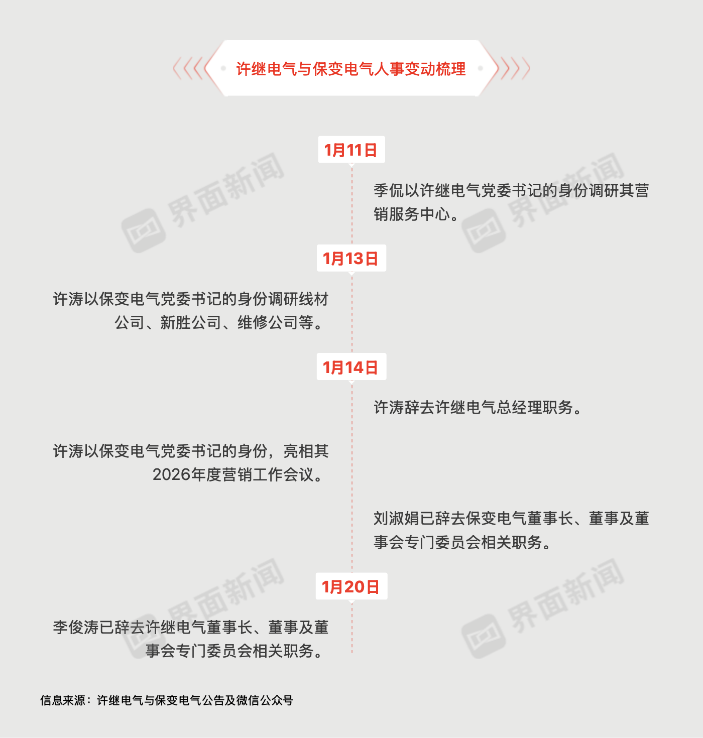 1月20日,許繼電氣(000400.SZ)發(fā)布公告稱,其董事長李俊濤因工作調(diào)動,近日申請辭去公司董事長、董事及董事會專門委員會相關(guān)職務(wù)。其原定任期至公司第九屆董事會屆滿之日止。辭職后,李俊濤將不再擔(dān)任公司任何職務(wù)。