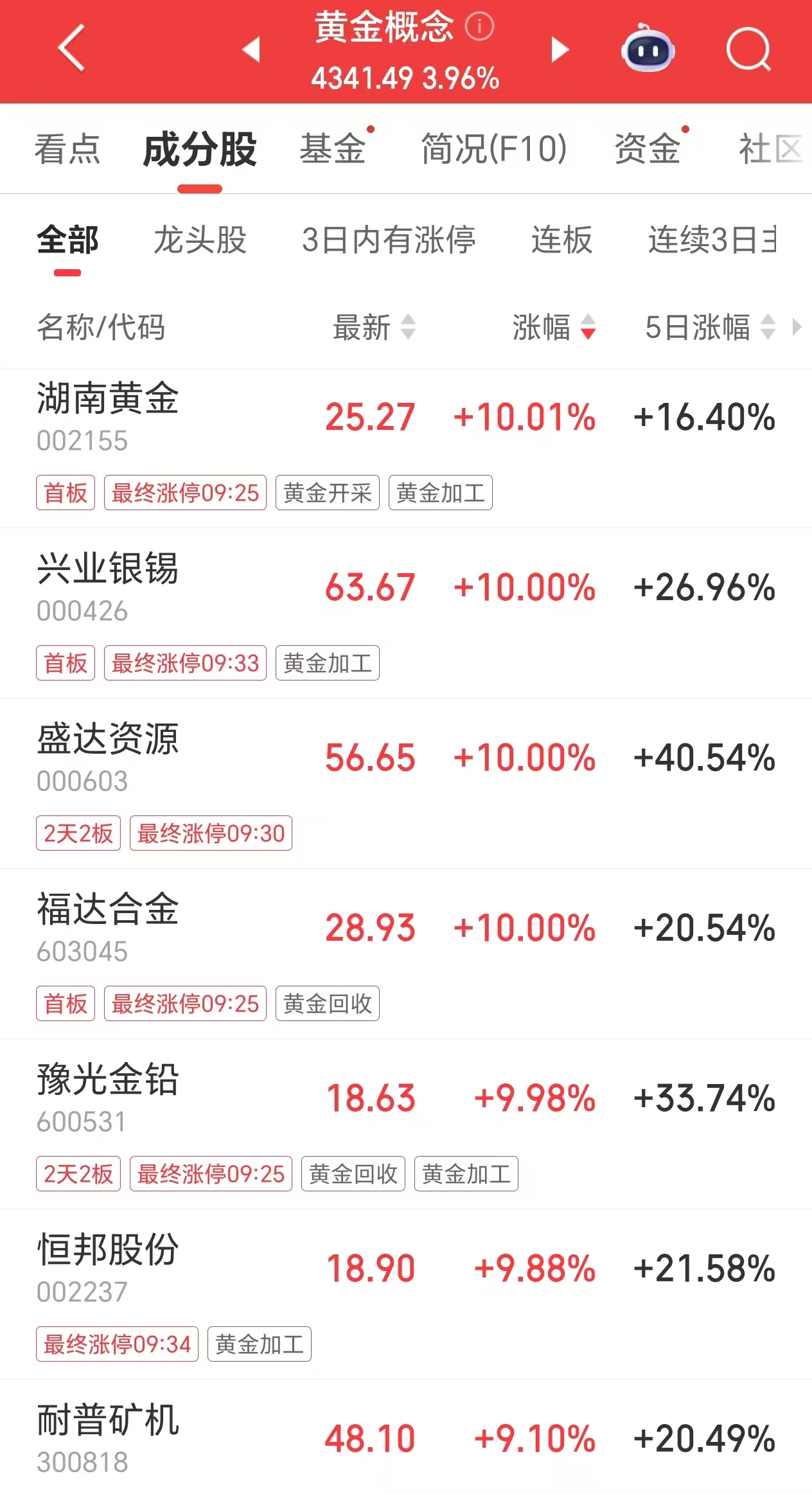 金價(jià);5000美元關(guān)口;A股黃金概念板塊;漲停潮