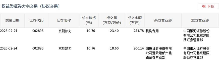 2月24日,京能熱力大宗交易成交42萬(wàn)股,成交額451.92萬(wàn)元,占當(dāng)日總成交額的6.03%,成交價(jià)10.76元,較市場(chǎng)收盤價(jià)11.72元折價(jià)8.19%。