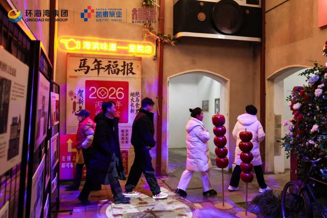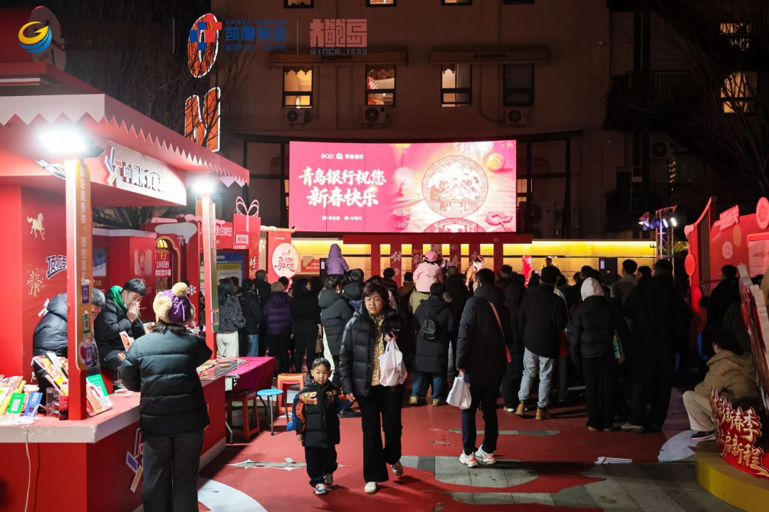 這種“接力”在晚7點(diǎn)到9點(diǎn)達(dá)到高潮。記者跟隨一個(gè)三代同堂的家庭體驗(yàn)了這條動(dòng)線:爺爺奶奶先在北區(qū)永春里的“商貿(mào)院落”前拍了一組花燈合影,順路在即墨路的“鮑島食里”買了“劈柴院”鍋貼當(dāng)夜宵;年輕的父母帶著孩子擠在“哪吒”燈組前拍了五分鐘短視頻;隨后一家人“順路”拐進(jìn)南區(qū),孩子在高密路28號(hào)的“YOUNG 空間”體驗(yàn) XR《太空奧德賽》,爺爺奶奶則在一層的文創(chuàng)區(qū)翻著青島出版集團(tuán)的聯(lián)名產(chǎn)品歇腳。