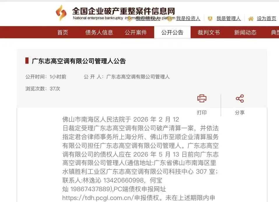 2026年春節(jié)前夕,當(dāng)人們還沉浸在辭舊迎新的喜悅中時(shí),那個(gè)曾經(jīng)叫板一眾同行,喊出“好空調(diào),志高造”的空調(diào)巨頭,卻沒(méi)能走進(jìn)新的一年。