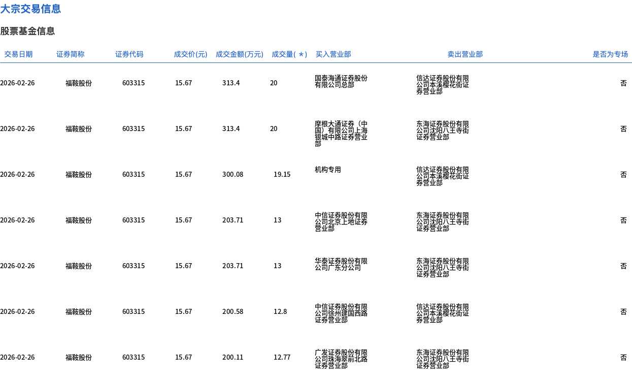 2月26日,福鞍股份大宗交易成交110.72萬(wàn)股,成交額1734.99萬(wàn)元,占當(dāng)日總成交額的3.58%,成交價(jià)15.67元,較市場(chǎng)收盤價(jià)17.95元折價(jià)12.7%。