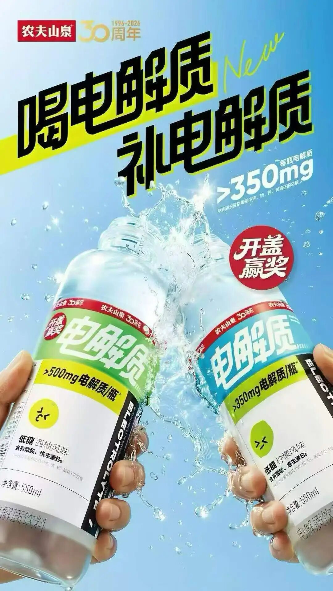 不過(guò)農(nóng)夫山泉似乎已開(kāi)始發(fā)力。在社交平臺(tái)最新流傳的電解質(zhì)新品海報(bào)上,“開(kāi)蓋贏獎(jiǎng)”的促銷標(biāo)語(yǔ)頗為醒目———通過(guò)經(jīng)典的促銷方式,這個(gè)飲料巨頭正試圖吸引消費(fèi)者的注意。
