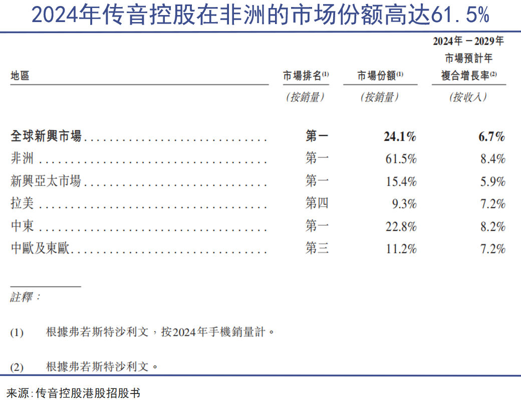 到2018年,傳音控股超越長(zhǎng)期占據(jù)非洲市場(chǎng)霸主地位的三星,成為非洲第一大手機(jī)品牌。根據(jù)傳音控股港股招股書(shū),2024年,其在非洲的市場(chǎng)份額已經(jīng)高達(dá)61.5%。